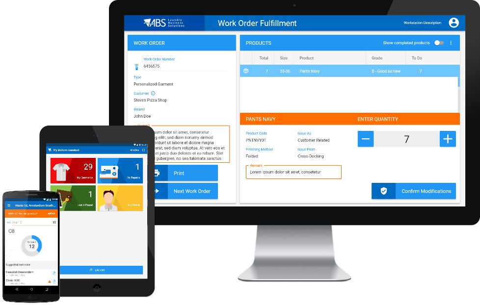 The key development strategy behind ABSSolute Laundry & Textile Rental ERP is one-time-entry and full integration. Business functions such as web order to delivery, stockroom reservations to purchasing, soil/clean counting and inventory control, tracking and (automated) sorting, system integrations, route delivery and pick-up; all in 1 system available! Streamlined integration of all processes into logical workflows, will be leading to increased efficiency.
